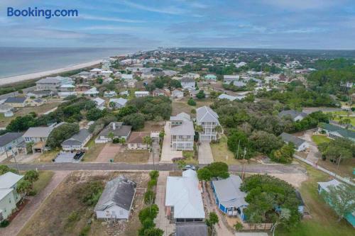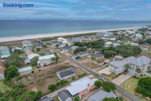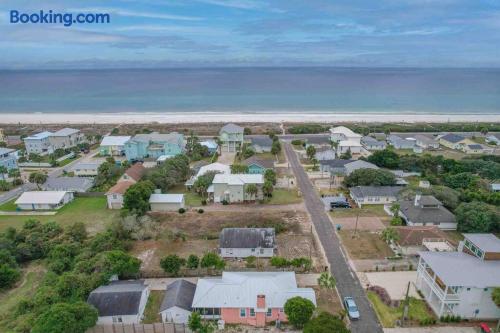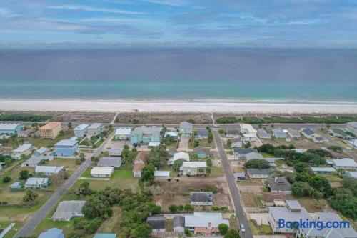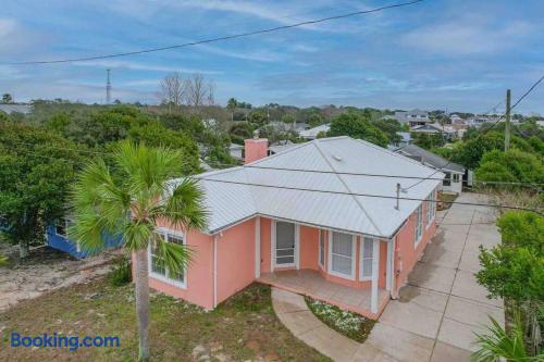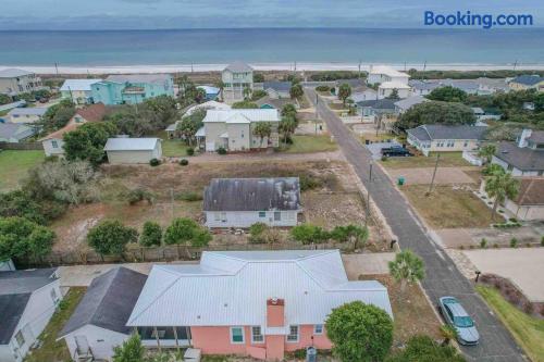 Ocean breezes, sunshine, and tranquility. Per friendly. 2 bedroom, 2 bathroom house Full enclosed Porch with Ping Pong Table Full size kitchen. Dining room with Foosball Table Living room with sofa couch Laundry Room Free parking for two cars. Access to neighborhood's private beach. Sounds of the ocean right from your front door Offering all the amenities needed to feel at home.