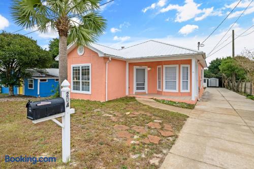 Enjoy the serenity of this beautifully renovated and well-appointed 750 sq. ft. property, it was designed to reflect a coastal theme with shiplap walls, décor and furniture, curated to offer the most relaxing and enjoyable experience. The Coastal Cottage offers lots of room to relax, and features lots of white space to allow your eyes and mind to rest and recoup as you enjoy your time there, as well as all the amenities you'll need to make your stay homey and memorable. The Coastal Cottage is the first of three cottages located on the same lot, the other two are called The Coastal Cabana and The Coastal Shanty, all three are short term rentals, situated in a prime location in Panama City Beach. The Cottages are in a nice quiet neighborhood called Sunnyside, just far enough away form the busy areas so as not to hear traffic or loud beach goers. The Cottage has two free parking spots. Each unit has beach chairs inside the property, plus there is a garden shed situated at the rear of the property, inside are a few items for your use, there is a small portable charcoal BBQ, buckets and spades and boogie boards. The Cottage has a Smart Television and can be used to stream any streaming service you may have an account with, eg, Roku, Netflix, Disney, Hulu, etc., and there is an antenna installed too so guests can watch local channels as well. There is an area to work remotely if need, internet is provided. The beach has a gated entrance just a few hundred yards down the street, as you enter you first walk along a sandy path through some sand dunes and then you're on the beach. This property is pet friendly, there is a pet fee, so please message us and tell us more about your pet or pets. There is a maximum of two Dogs up to 80lbs each that can stay at the property, there is a pet fee of $50.00 per pet, per stay. The pet fee will be charge automatically for Airbnb reservations, for Vrbo or Booking.com reservations after indicating it on your booking please message us too with the details, an invoice will be sent prior to your check in, thanks. Sorry, no cats allowed. There are many beaches close by that are pet friendly, but the local private beach at the bottom of the street is not. The property does not have a fenced in yard, or much of a grassy area. Available discounts: 5% off weekly bookings, and 10% off monthly or longer bookings, applied at checkout. All three Coastal Cottages are professionally managed by Stay Short Term Vacation Rentals
