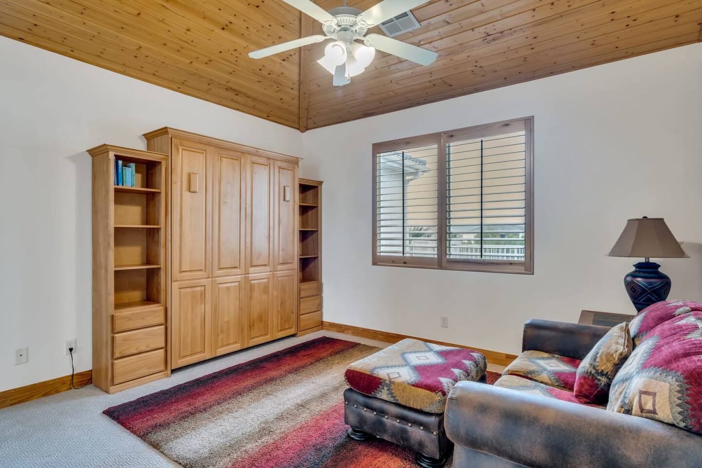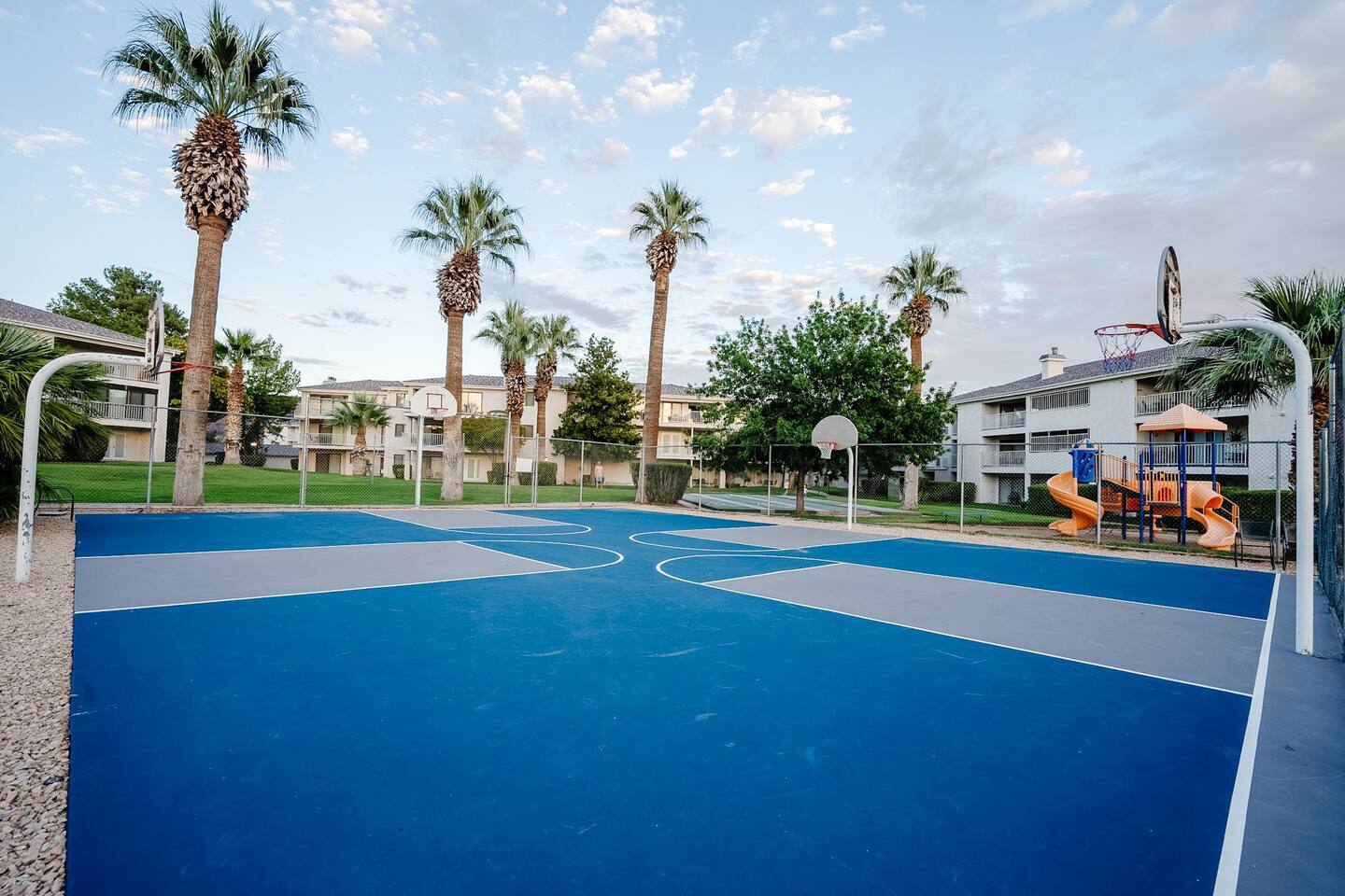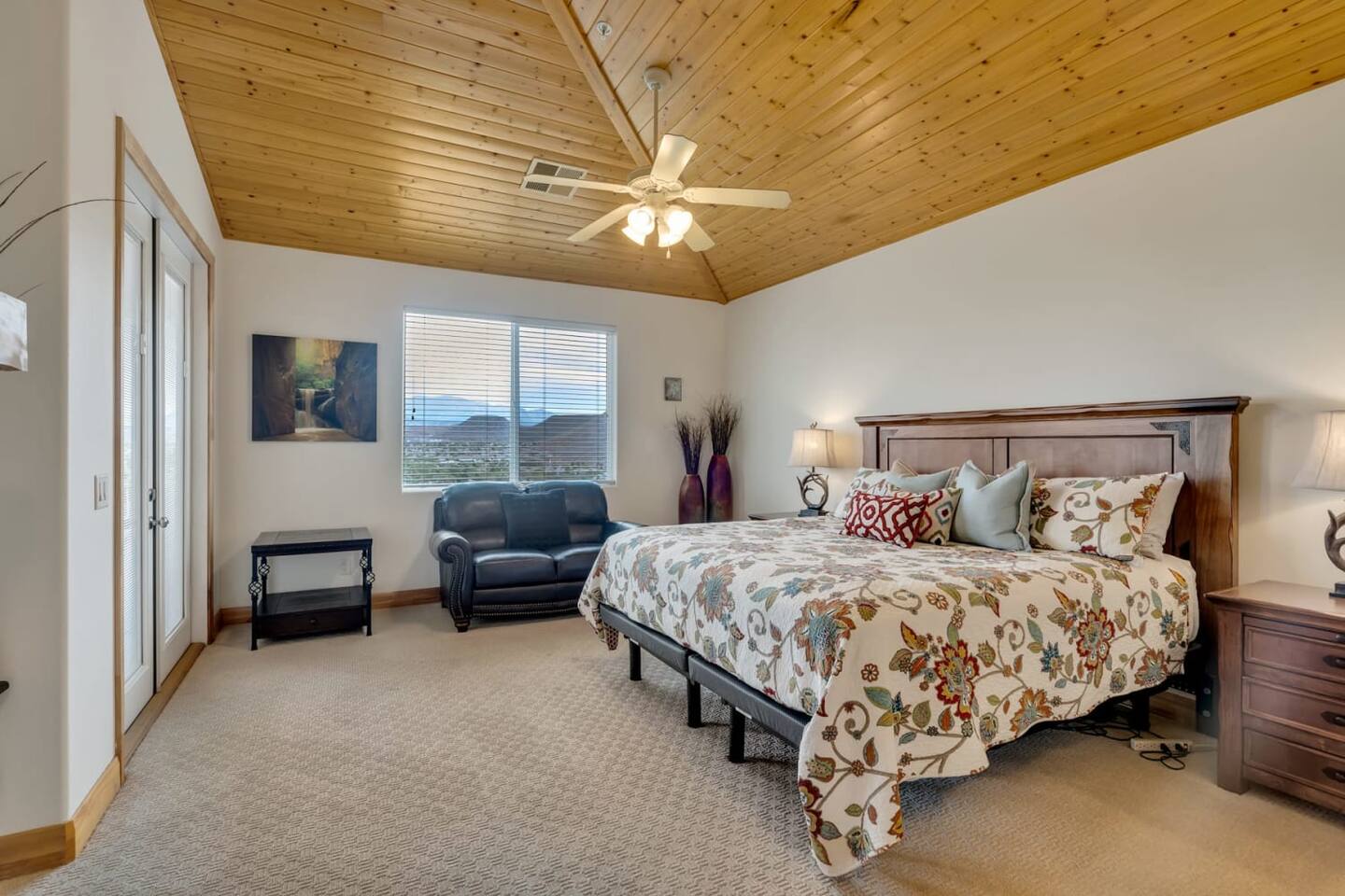 Our Las Palmas Escape Condo is a beautiful spacious unit, offering all the amenities you would need to feel right at home. This condo is all on one level, consisting of two bedrooms with queen size beds, the third bedroom has a queen sized Murphy Bed, along with three full bathrooms for everyone's convenience. There is a full kitchen, a dining area, lovely living room, plus a separate laundry room too. Through both the patio doors in the living room, and the master bedroom, is a large balcony with patio furniture, a full size BBQ, and stunning views of the mountains and surrounding area. There is a Smart television above the fireplace that can be used to stream any company you many have an account with eg, Roku, Netflix, Hulu, Disney, etc. Internet is included. Free parking for more than one car is available outside the building, and there is a garage for rent at $25/day so you can store any outdoor equipment you may bring. There is a free pass in the condo for your use, it allows up to 10 people full access to all the facilities at the resort, here's a few suggestions of what you could do, go and check out the activities in the clubhouse, like billiards, the exercise room, or just pick something up at the snack bar and just relax in the lounge area, or choose to play tennis, volleyball, basketball or even pickleball, and shuffleboard is available too. Play a bit of golf, or go for a swim in any of the pools there, (the inside pool is heated, the outside pool is not), or just soak and relax in any of the hot tubs, Plus the children are going to enjoy the children's play areas, splash pad. and pools, some even have water slides too, There are also walking trails, or if you prefer to ride a bike go cycling on the bike trail instead. or just stay on site and enjoy the beautiful grounds offering plenty of mature Palm Trees. Other places to visit outside of the resort include a BMC Activity Center which is right next door which also has a Ninja course and roller skating rink, or visit Zion's Canyon, Snow Canyon, Sand Hollow Reservoir, Thunder Junction Park and train ride, or Tuacahn Theater all of which are close by, or if you feel like a little drive out you could visit Zion's National Park, or Shakespeare Theater in Cedar City which are both about 45 minutes away. The resort is close to lots of restaurants and shopping locations too. This unit is not pet friendly, and the resorts bylaws do not allow animals or smoking anywhere on the property. Available discounts: 5% off weekly bookings, and 10% off for monthly or longer stays, applied at checkout. Las Palmas Escape is professionally managed by Stay Short Term Vacation Rentals.