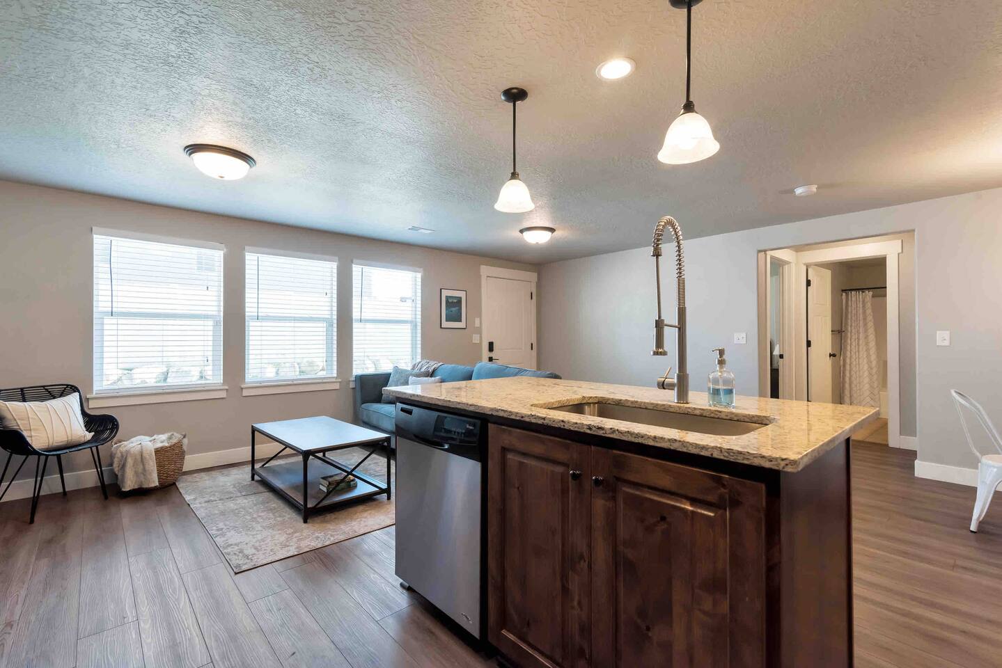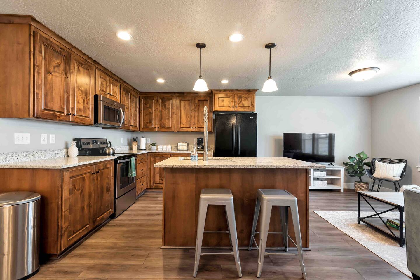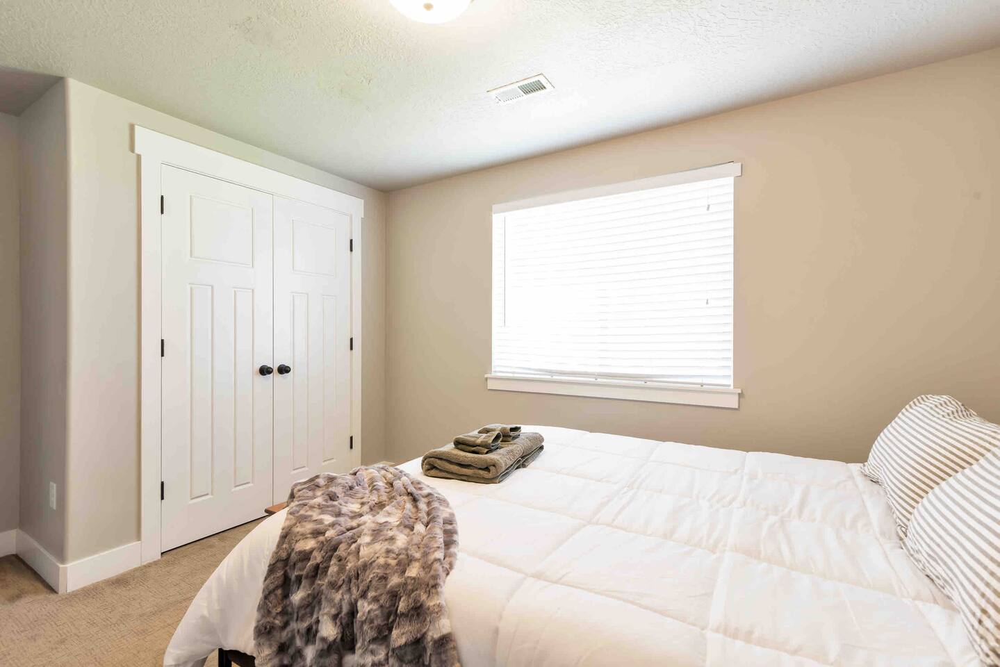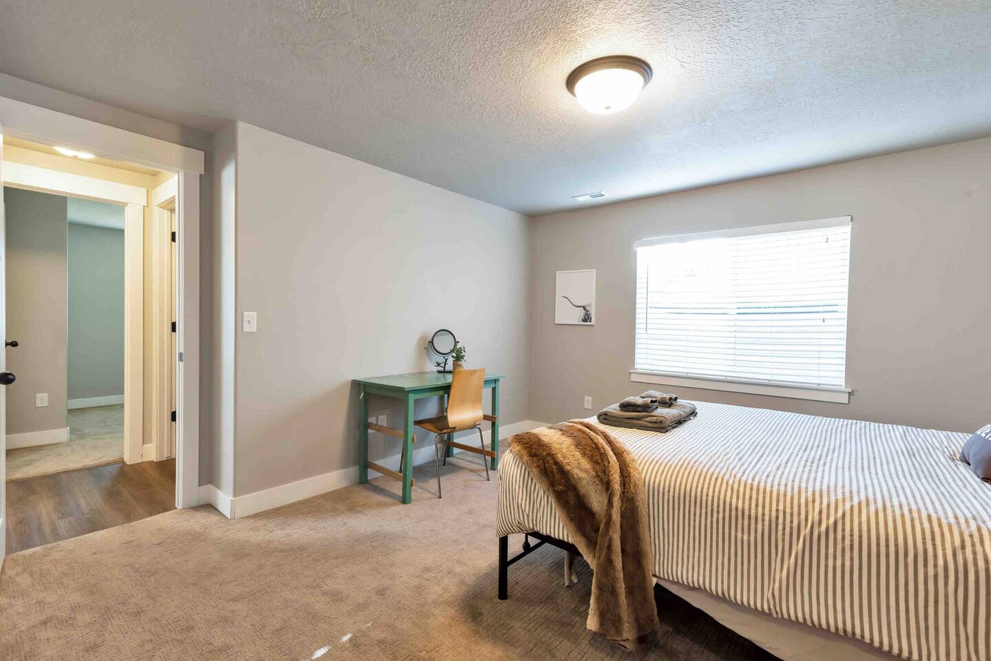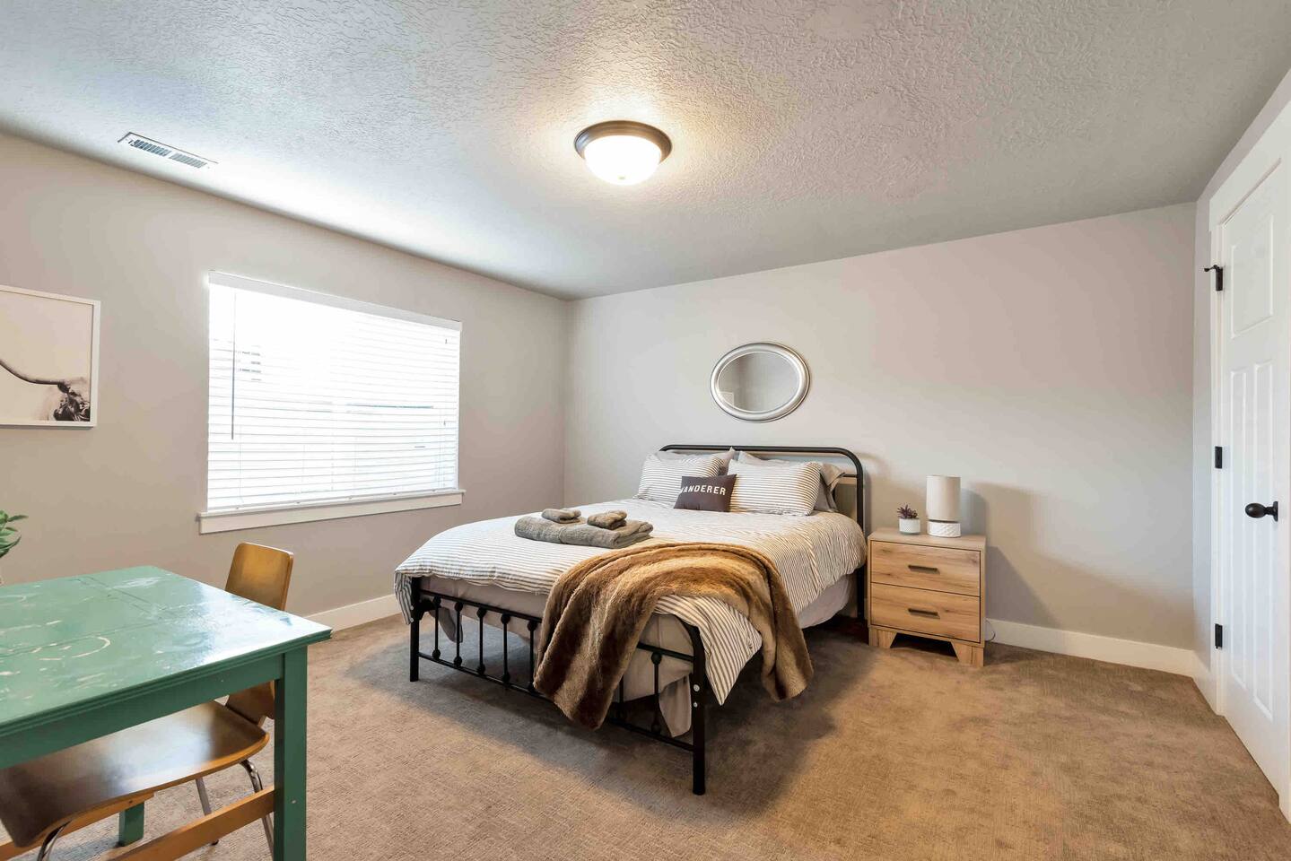 This modern, all one one level, 2 bedrooms, 1 bathroom apartment offers all the amenities you'll need to make your stay homey and memorable. It has queen beds in both bedrooms, a pullout sofa in the living room, a full bathroom and kitchen, a dining area, and a separate laundry room. Just outside your front door you will find a nice grassy, fully fenced in shared backyard, with an in ground trampoline in one area of it, along with a patio with seating, and a fire pit. The unit has a Smart Television that can be used to stream your favorite companies, eg, Roku, Netflix, Hulu, Disney etc., plus there is an antenna installed to allow tenants to watch local channels. The internet is already connected. 1 Gig Fiber Optic, so it's suitable for working remotely if needed. Free parking is available for up to two cars on the driveway, plus you have the option to park one car in the shared three car garage if you would prefer. This property is Pet Friendly, two dogs with a maximum weight for each of 80lbs are allowed in the property, there is a pet fee of $100.00 per month. The pet fee will be charge automatically for Airbnb reservations, for Vrbo or Booking.com reservations after indicating it on your booking please message us too with the details, an invoice will be sent prior to your check in, thanks. Sorry, no cats allowed. The property is set in a lovely quiet neighborhood and is conveniently located to local shopping, an outdoor sports facility, 2 minutes to the Links Golf Course, 6 minutes to Utah Lake, close to B.Y.U. Provo and U.V.U., and only 16 minutes to skiing at Sundance, plus so much more. Sleepy Ridge Apartment is professionally managed by Stay Short Term Vacation Rentals.